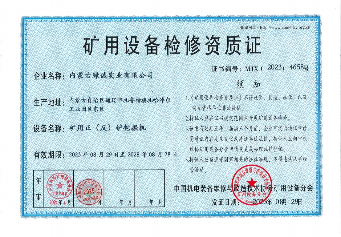 2018年我公司通過(guò)中國(guó)機(jī)電裝備維修與改造技術(shù)協(xié)會(huì)礦用設(shè)備分會(huì)審核并取得了9項(xiàng)礦用設(shè)備檢修資質(zhì)證書(shū)。公司本著“誠(chéng)信為本 質(zhì)量為先 全心全意為客戶(hù) ”的服務(wù)理念,圓滿(mǎn)完成各個(gè)廠礦的機(jī)械維修及配套服務(wù),期待與您共同合作。